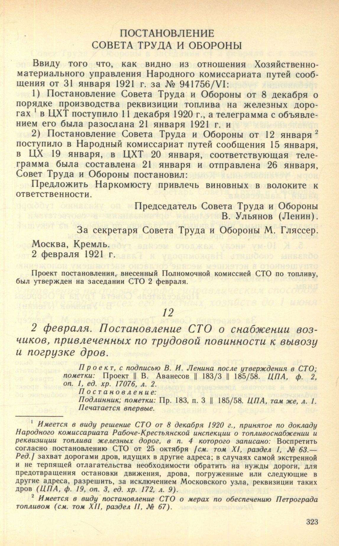 Главная Серия «Экономическая история. Документы, исследования, переводы» Декреты советской власти в 18 т. Декреты Советской власти. Т. XIII. 1 февраля – 31 марта 1921 г. Документы 2 февраля. Постановление СТО о снабжении возчиков, привлеченных по...