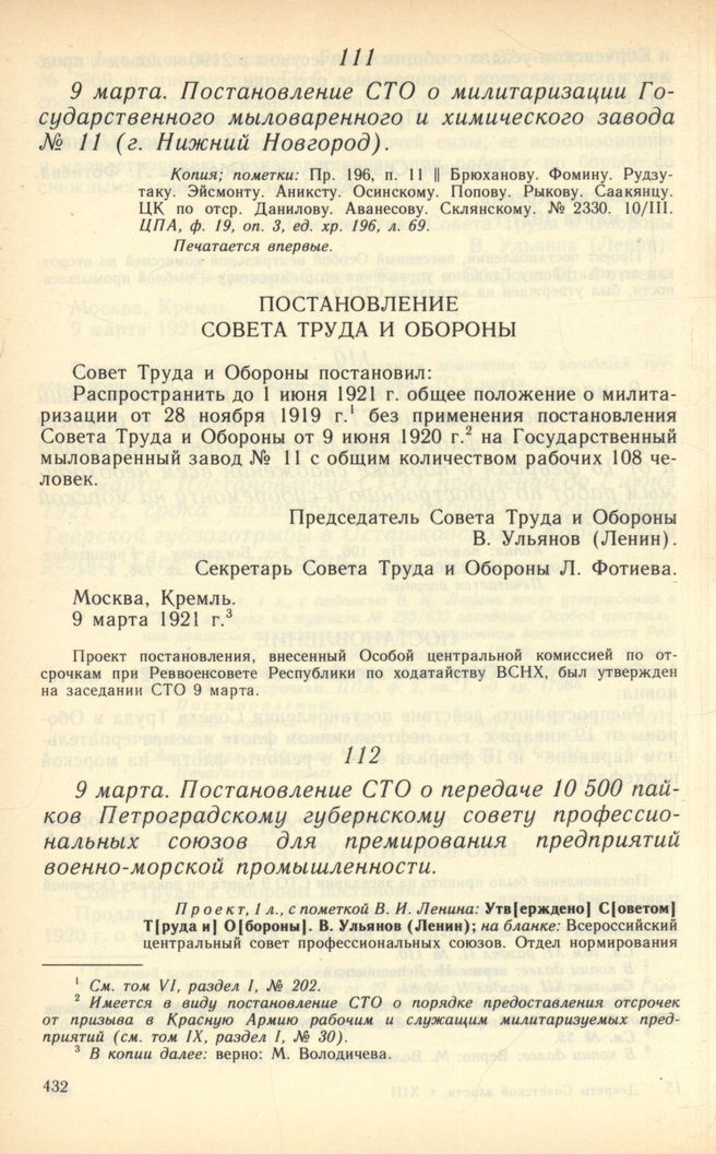 Главная Серия «Экономическая история. Документы, исследования, переводы» Декреты советской власти в 18 т. Декреты Советской власти. Т. XIII. 1 февраля – 31 марта 1921 г. Документы 9 марта. Постановление СТО о милитаризации Государственного мыловар...