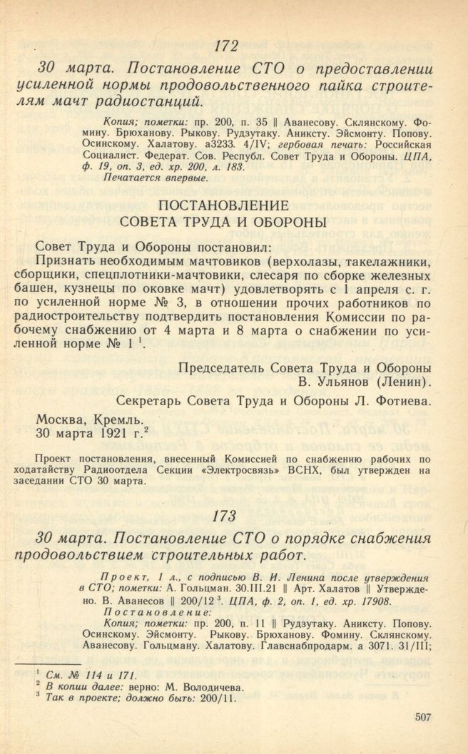 Главная Серия «Экономическая история. Документы, исследования, переводы» Декреты советской власти в 18 т. Декреты Советской власти. Т. XIII. 1 февраля – 31 марта 1921 г. Документы 30 марта. Постановление СТО о предоставлении усиленной нормы продов...