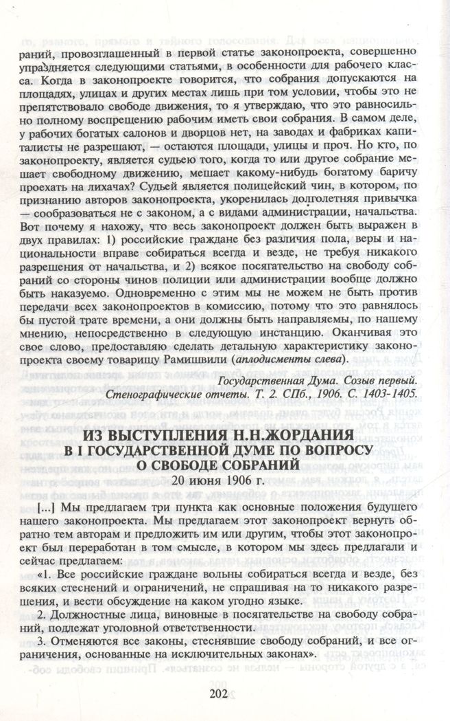 Из выступления Н.Н.Жордания в I Государственной Думе по вопросу о свободе собраний. 20 июня 1906 г.