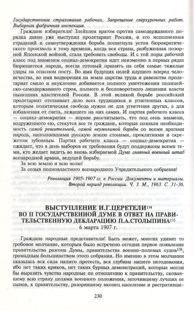 Выступление И.Г.Церетели во II Государственной Думе в ответ на правительственную декларацию П.А.Сголыпина. 6 марта 1907 г. // Государственная Дума. Созыв второй. Стенографические отчеты. Т. 1. СПб., 1907. Стлб. 120-129.