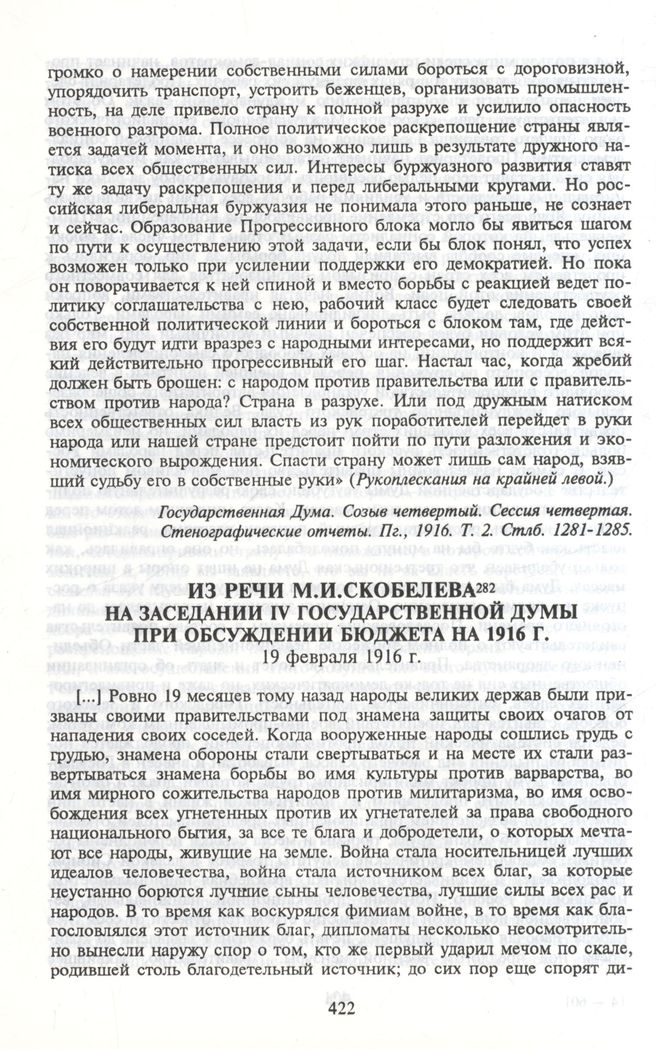 Главная Серия «Политические партии России. Конец XIX – первая треть ХХ века... Меньшевики в 1903—1931 гг. Меньшевики. Документы и материалы. 1903 — февраль 1917 гг. Документы Из речи М.И.Скобелева на заседании IV Государственной Думы при обсу...