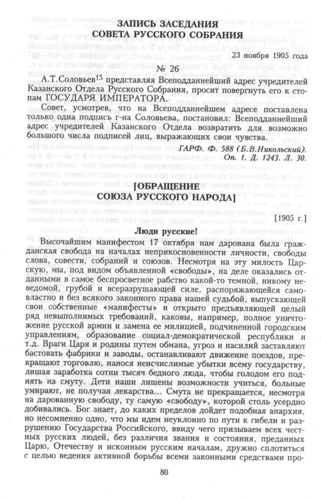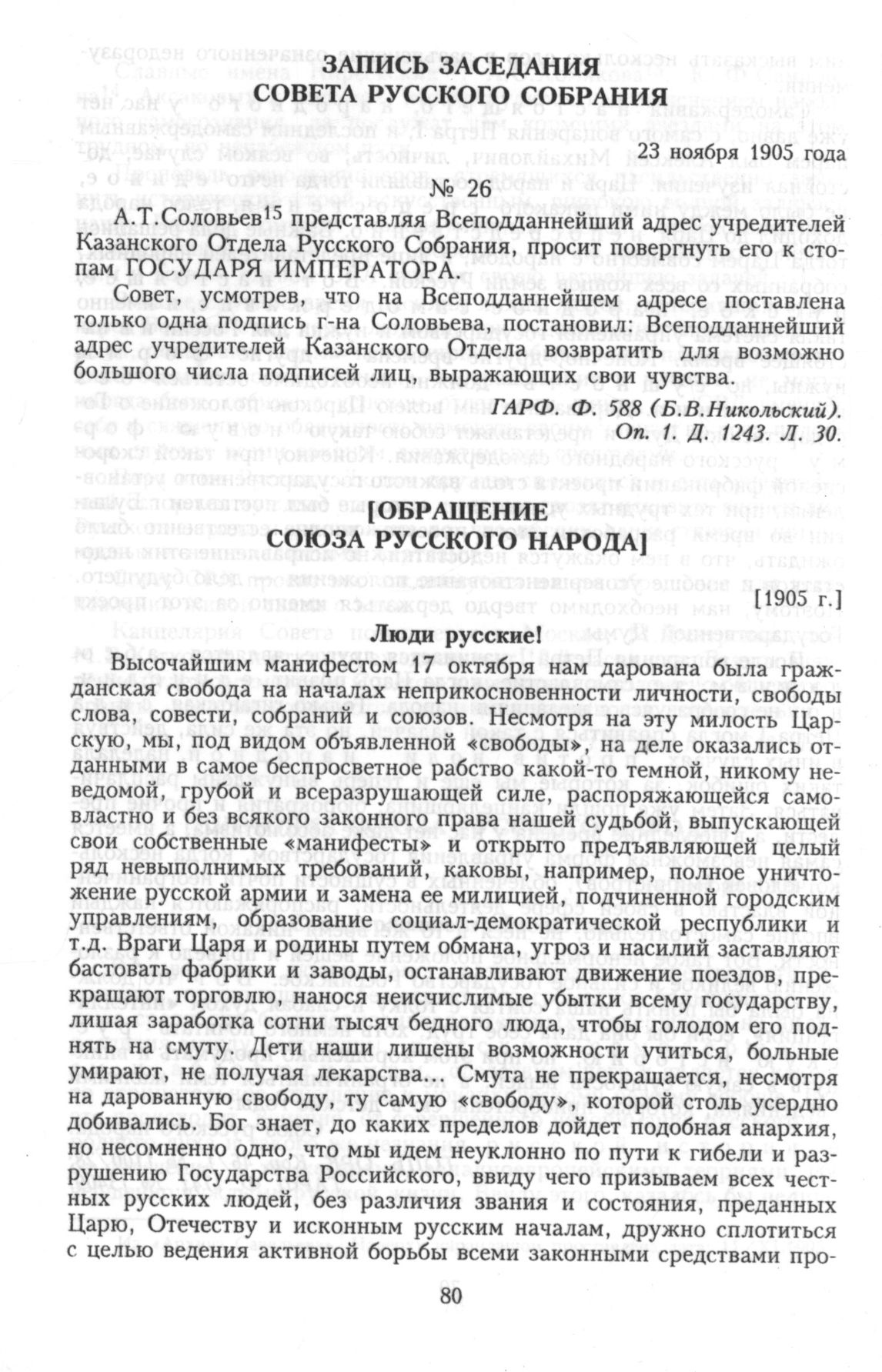 Запись заседания совета Русского Собрания. 23 ноября 1905 г.