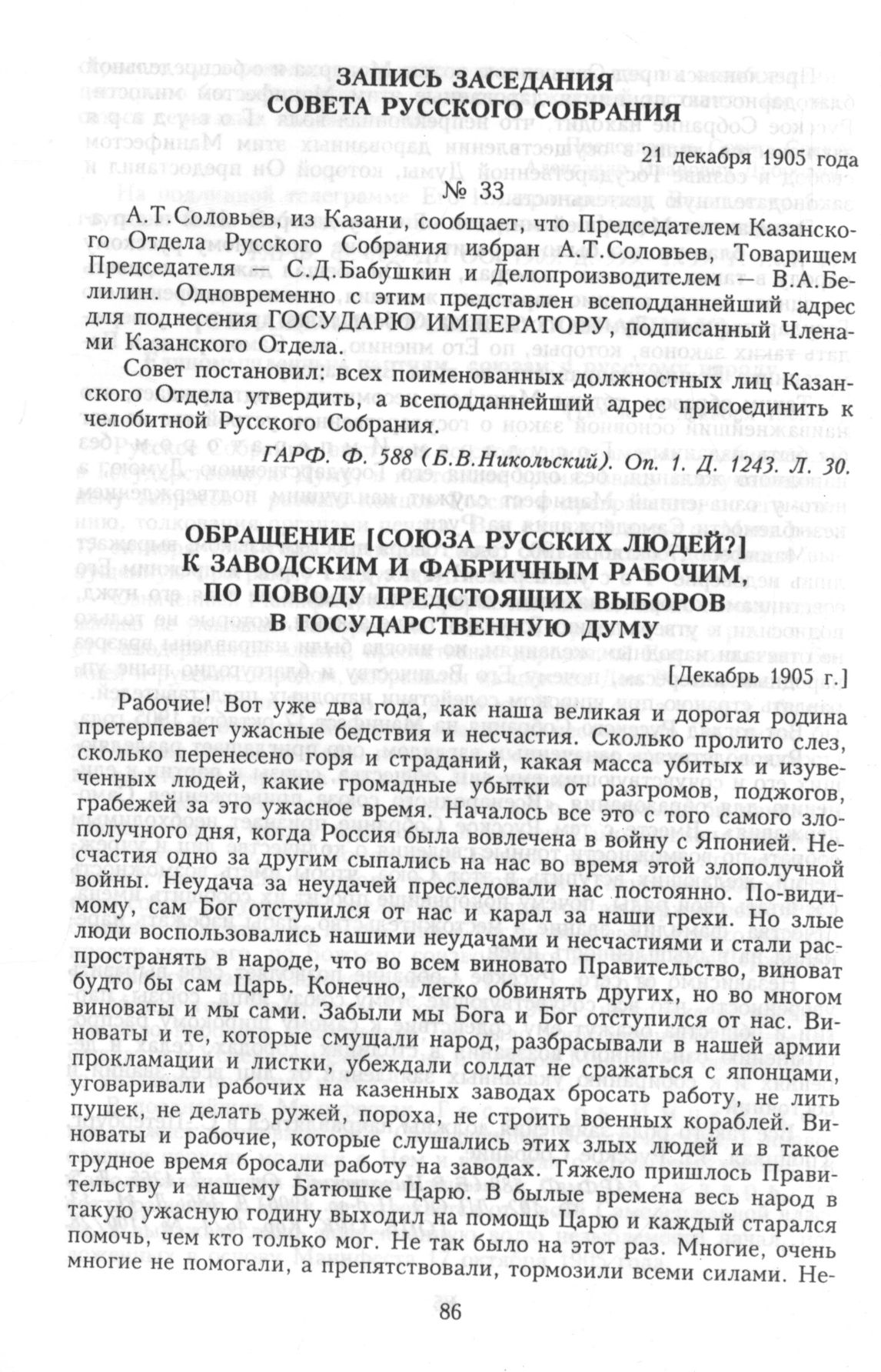 Запись заседания Совета Русского Собрания. 21 декабря 1905 г. // ГАРФ. Ф. 588 (Б.В. Никольский). Оп. 1. Д. 1243. Л. 30.