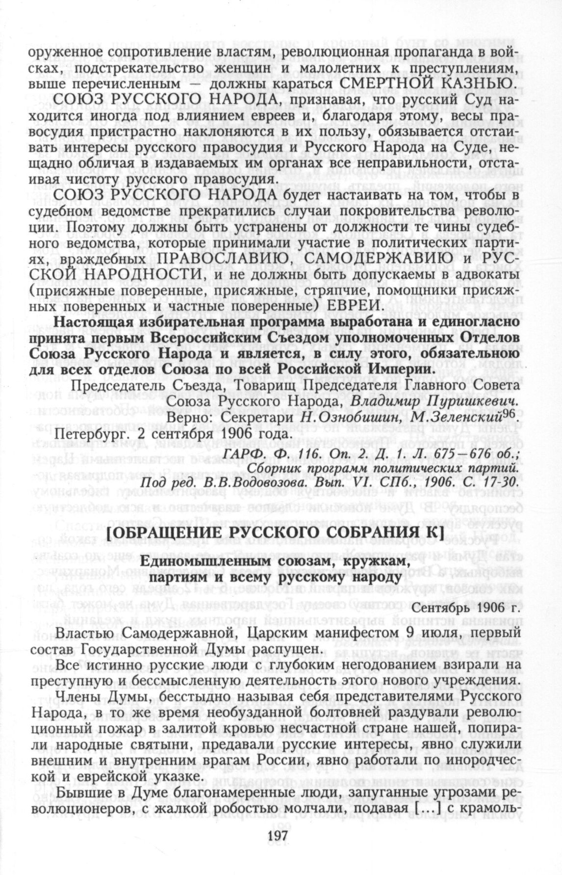 Главная Серия «Политические партии России. Конец XIX – первая треть ХХ века... Правые партии. 1905—1917 гг. Документы и материалы. В 2 т. Правые партии. 1905—1917 гг. Документы и материалы. В 2 т. Т. 1. 19... Документы [Обращение Русского Собрания к] единомышленным союзам, кружкам, пар...