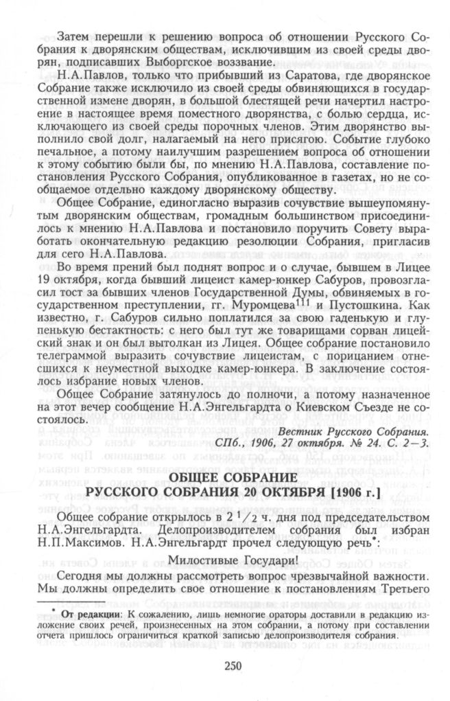 Главная Серия «Политические партии России. Конец XIX – первая треть ХХ века... Правые партии. 1905—1917 гг. Документы и материалы. В 2 т. Правые партии. 1905—1917 гг. Документы и материалы. В 2 т. Т. 1. 19... Документы Общее собрание Русского Собрания 20 октября [1906 г.]