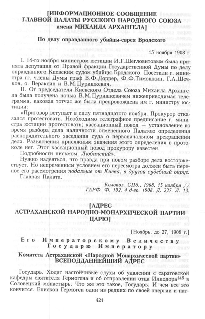 [Адрес Астраханской Народно-Монархической Партии Царю]. [Ноябрь, до 27, 1908 г.] // ГАРФ. Ф. 1467. Оп. 1. Л. 853. Ч. 55.
