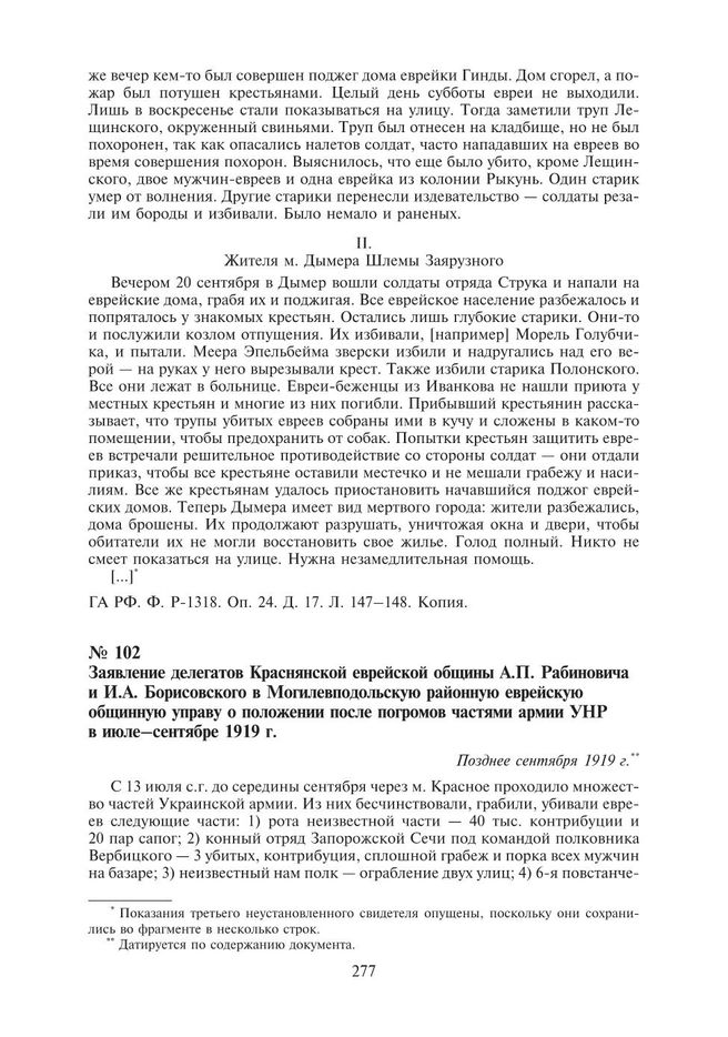 Заявление делегатов Краснянской еврейской общины А.П. Рабиновича и И.А. Борисовского в Могилев-подольскую районную еврейскую общинную управу о положении после погромов частями армии УНР в июле–сентябре 1919 г. Позднее сентября 1919 г. // ГА РФ. Ф. Р-1339. Оп. 1. Д. 423. Л. 34. Копия.