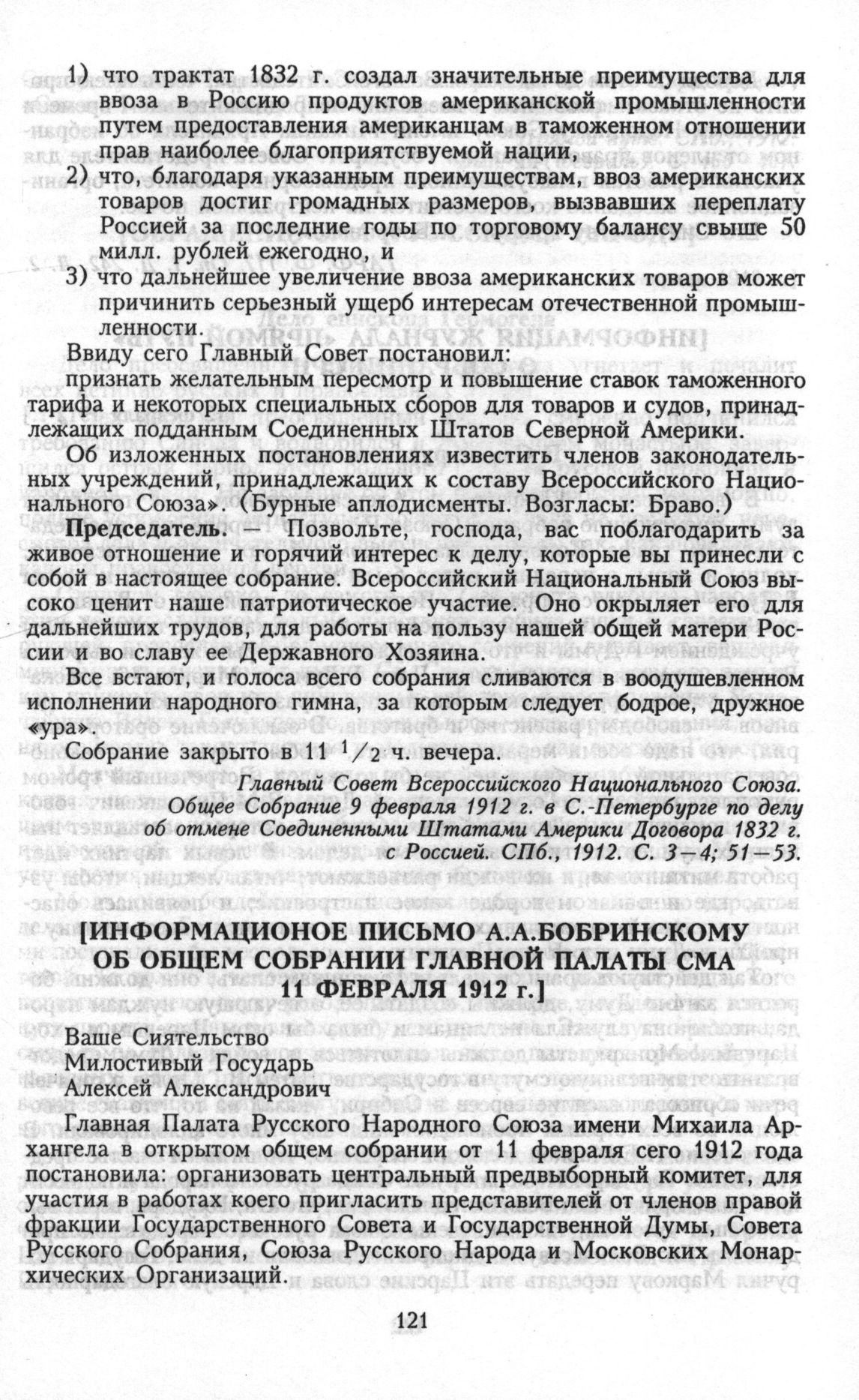 [Информационное письмо А.А. Бобринскому об общем собрании главной палаты СМА. 11 февраля 1912 г.] // ГАРФ. Ф. 117. Оп. 1. Д. 242. Л. 2.