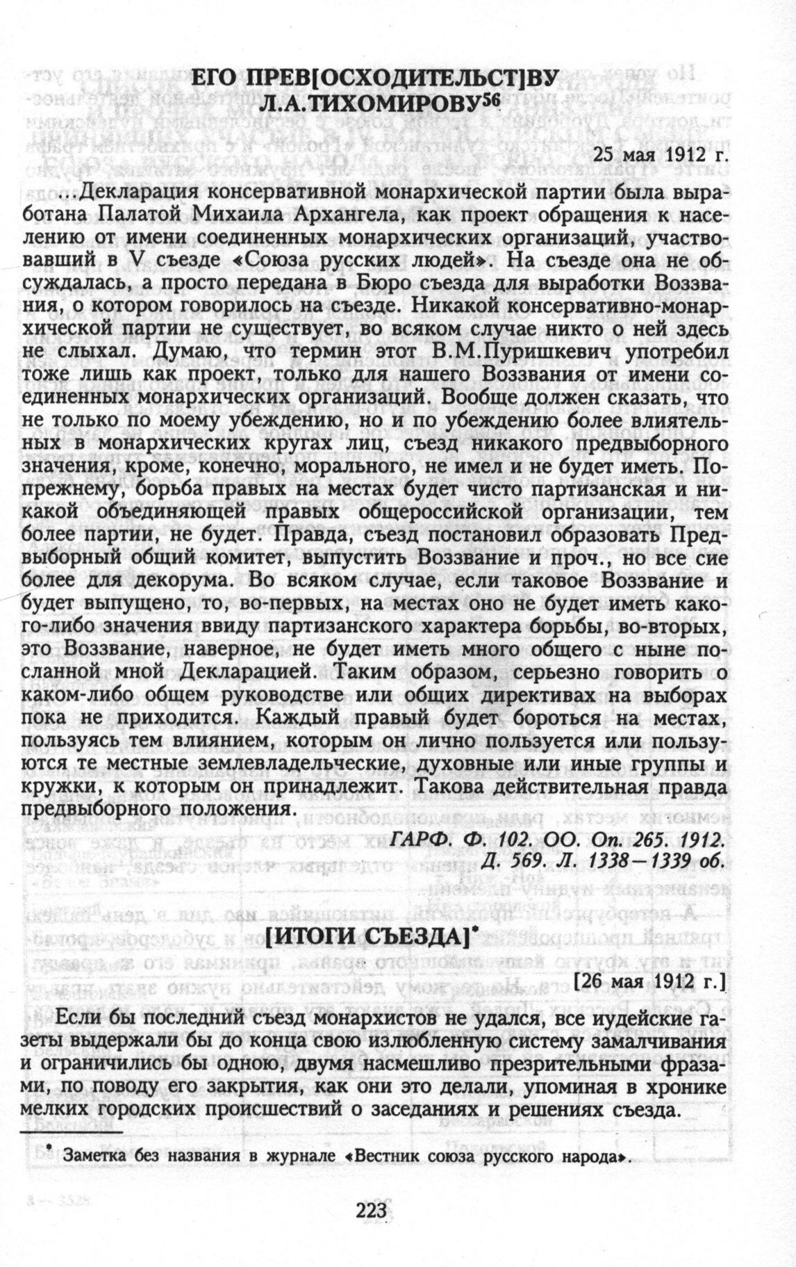 Его прев[осходительст]ву Л.А. Тихомирову 25 мая 1912 г. // ГАРФ. Ф. 102. ОО. Оп. 265. 1912. Д. 569. Л. 1338-1339 об.