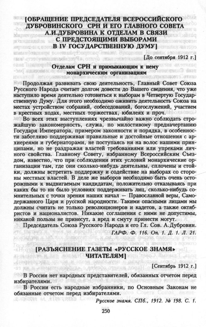 [Разъяснение газеты «Русское Знамя» читателям] [сентябрь 1912 г.]