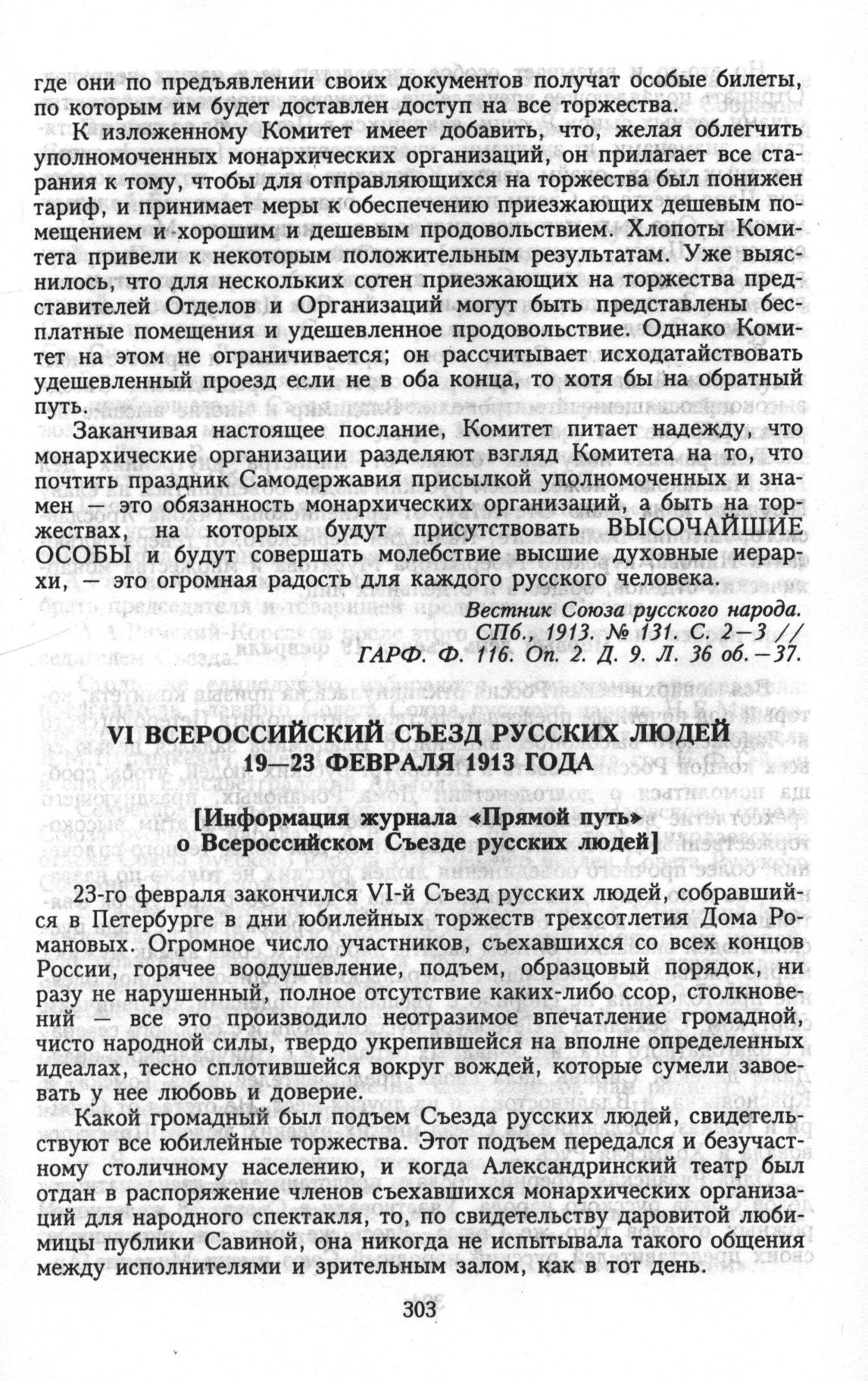 VI всероссийский съезд русских людей 19-23 февраля 1913 года // Прямой путь. СПб., 1913. Вып. III (март). С. 151 - 168.