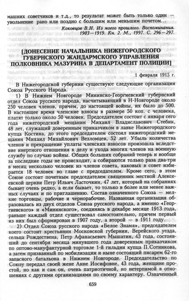 [Донесение начальника нижегородского губернского жандармского управления полковника Мазурина в департамент полиции] 1 февраля 1915 г. // ГАРФ. Ф. 102. 4 д-во. 1915. Д. 151. Л. 80 - 84.