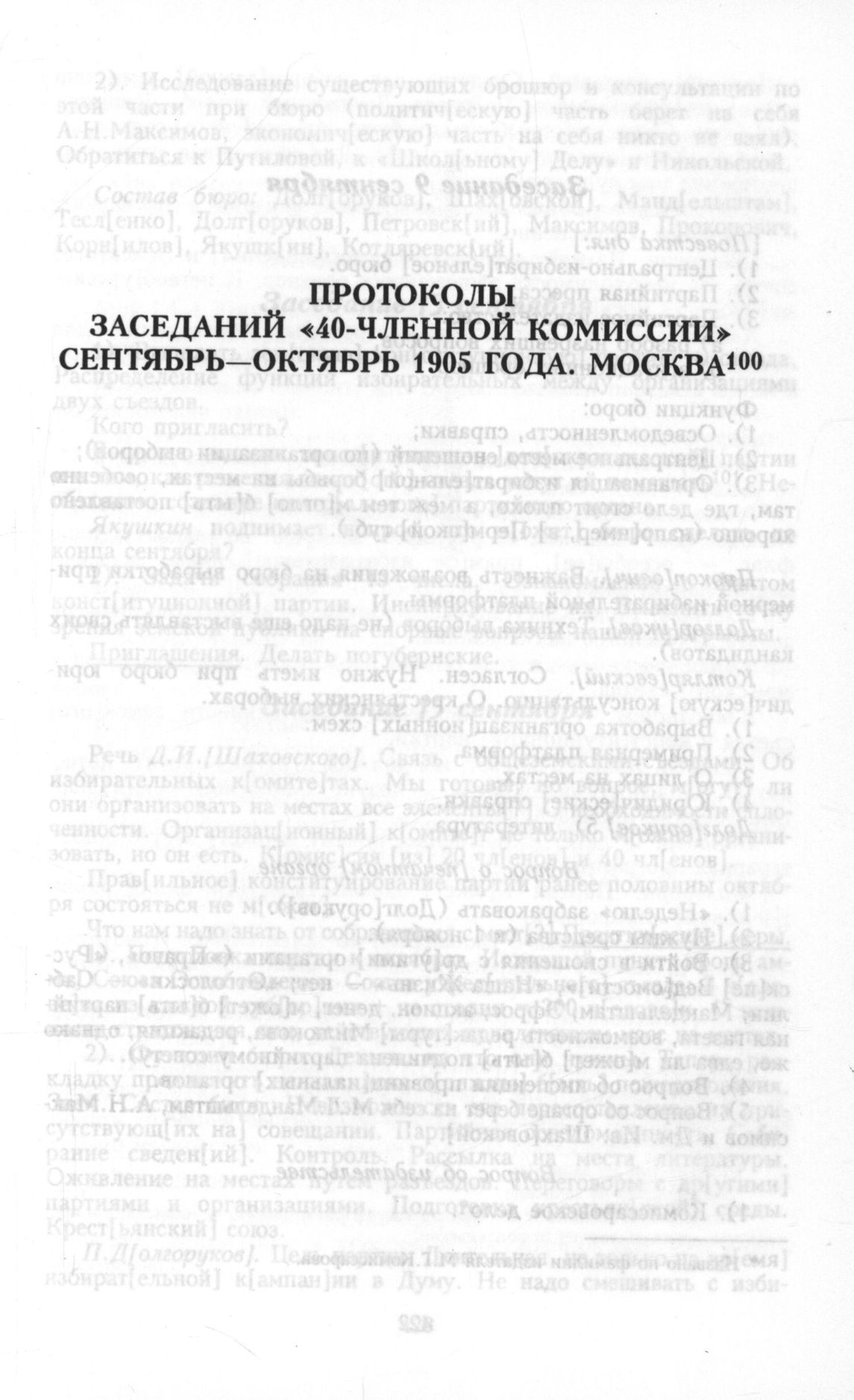 Протоколы заседаний «40-членной комиссии» сентябрь-октябрь 1905 года. Москва