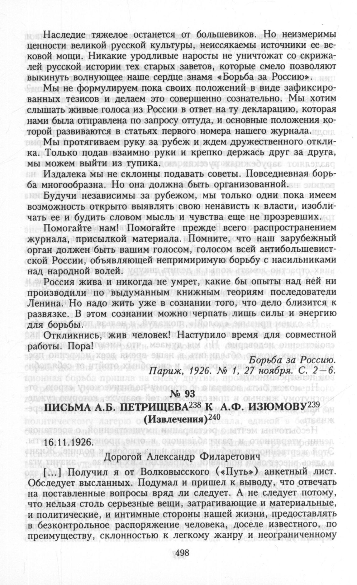 Письма А.Б. Петрищева к А.Ф. Изюмову. (Извлечения) // ГАРФ, Ф. 5962. Оп. 1. Д. 7. Л. 77-77 об.; ГАРФ, Ф. 5962. Оп. 1. Д. 7. Л. 83-83 об.