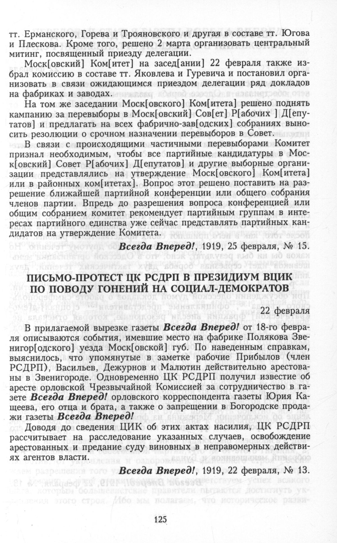 Главная Серия «Политические партии России. Конец XIX – первая треть ХХ века... Меньшевики в 1903—1931 гг. Меньшевики в большевистской России. 1918—1924. Меньшевики в 1919—19... Документы Письмо-протест ЦК РСДРП в Президиум ВЦИК по поводу гонений на социа...