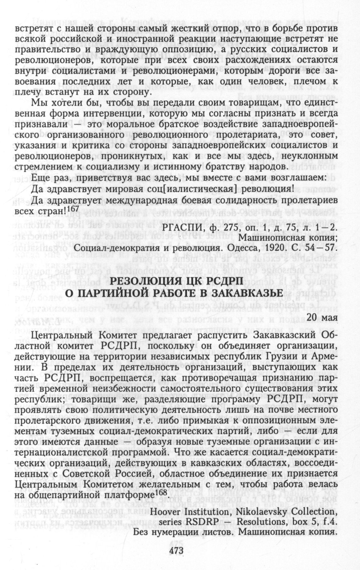 Главная Серия «Политические партии России. Конец XIX – первая треть ХХ века... Меньшевики в 1903—1931 гг. Меньшевики в большевистской России. 1918—1924. Меньшевики в 1919—19... Документы Резолюция ЦК РСДРП о партийной работе в Закавказье. 20 мая
