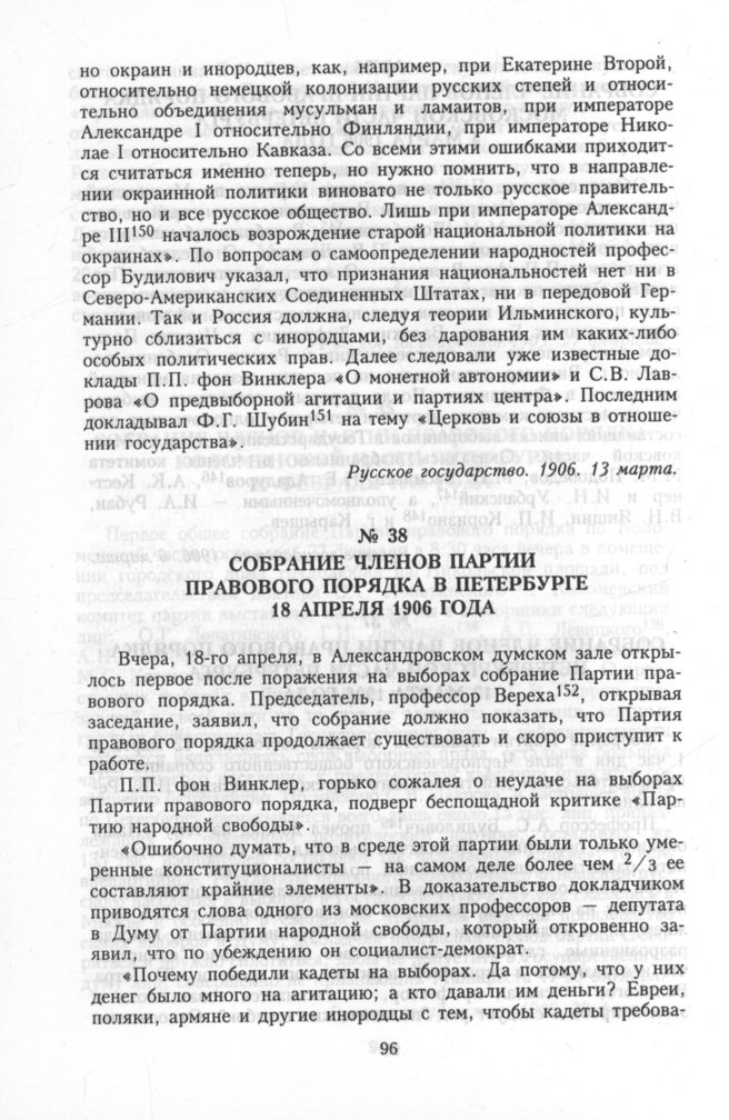 Собрание членов Партии правового порядка в Петербурге 18 апреля 1906 года // Петербургский листок. 1905. 19 апреля.