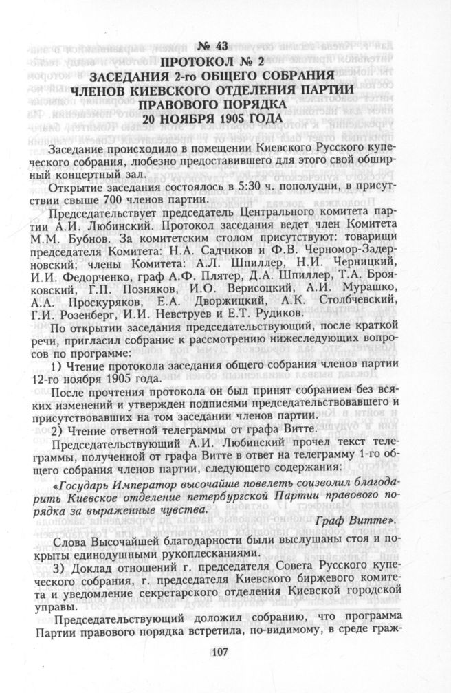Протокол № 2 заседания 2-го общего собрания членов Киевского отделения Партии правового порядка 20 ноября 1905 года