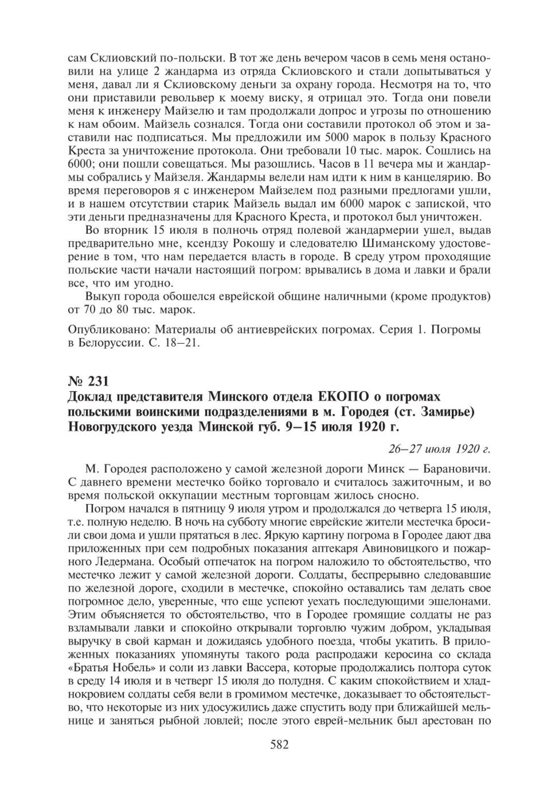 Доклад представителя Минского отдела ЕКОПО о погромах польскими воинскими подразделениями в м. Городея (ст. Замирье) Новогрудского уезда Минской губ. 9–15 июля 1920 г. 26–27 июля 1920 г. // ГА РФ. Ф. Р-1339. Оп. 1. Д. 463. Л. 6–8. Копия // Материалы об антиеврейских погромах. Серия 1. Погромы в Белоруссии. С. 21–26.