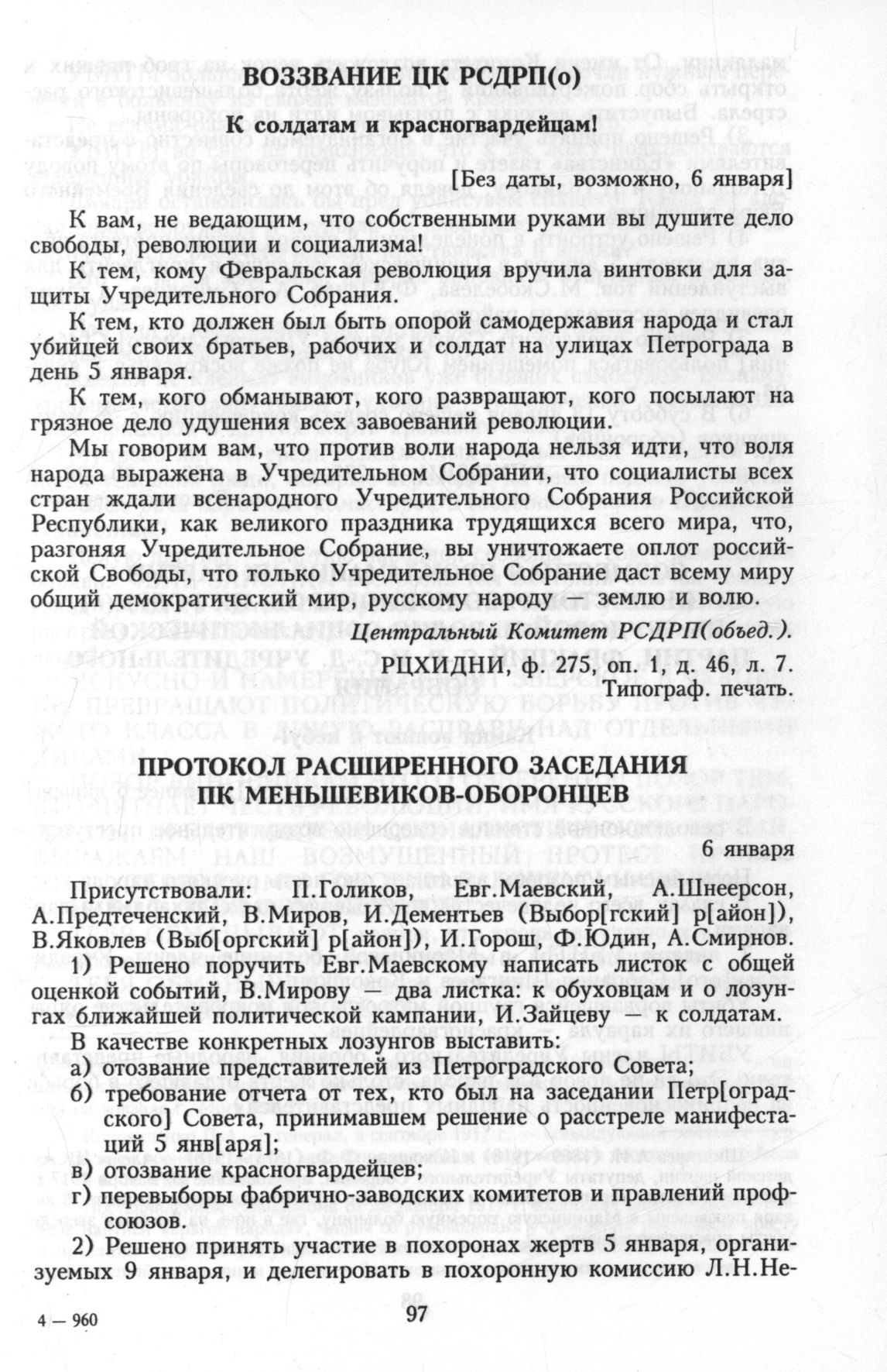 Главная Серия «Политические партии России. Конец XIX – первая треть ХХ века... Меньшевики в 1903—1931 гг. Меньшевики в большевистской России. 1918—1924. Меньшевики в 1918 году Документы Воззвание ЦК РСДРП(о). К солдатам и красногвардейцам! [Без даты, во...