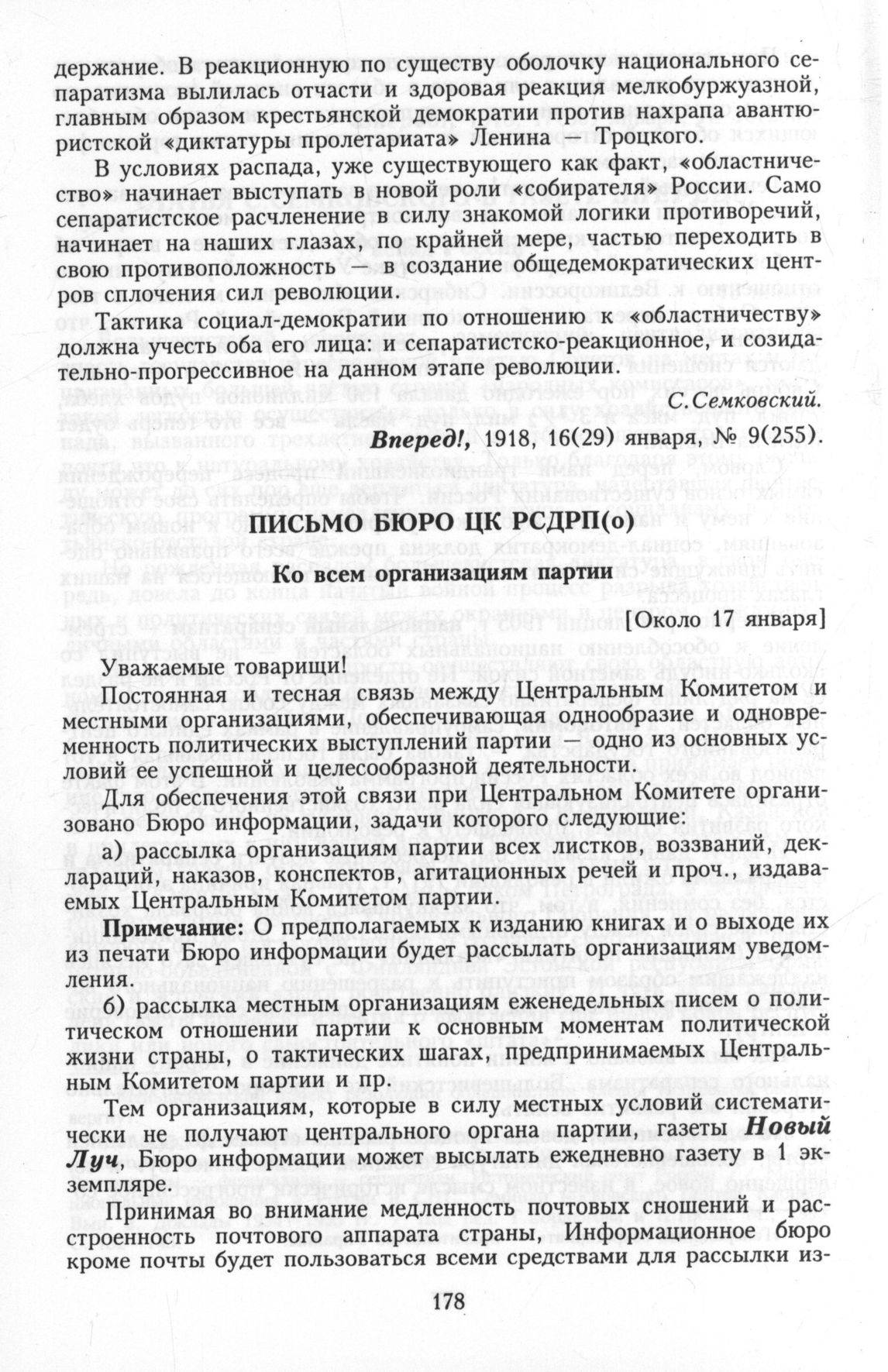 Главная Серия «Политические партии России. Конец XIX – первая треть ХХ века... Меньшевики в 1903—1931 гг. Меньшевики в большевистской России. 1918—1924. Меньшевики в 1918 году Документы Письмо Бюро ЦК РСДРП(о). Ко всем организациям партии. [Около 17 янв...