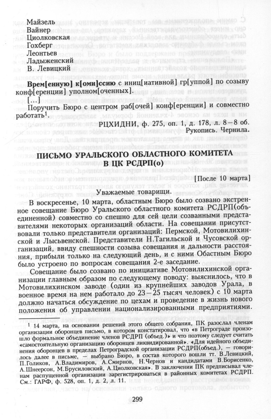 Главная Серия «Политические партии России. Конец XIX – первая треть ХХ века... Меньшевики в 1903—1931 гг. Меньшевики в большевистской России. 1918—1924. Меньшевики в 1918 году Документы Письмо Уральского Областного комитета в ЦК РСДРП(о). [После 10 марта]