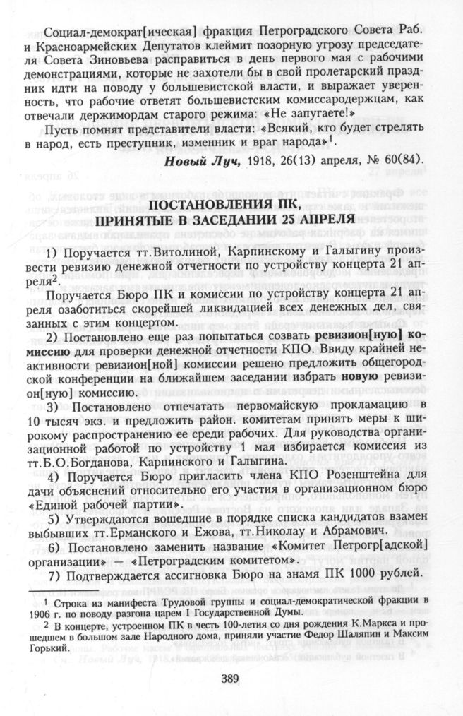 Постановления ПК, принятые в заседании 25 апреля // Новый Луч, 1918, 27(14) апреля, № 61(85).