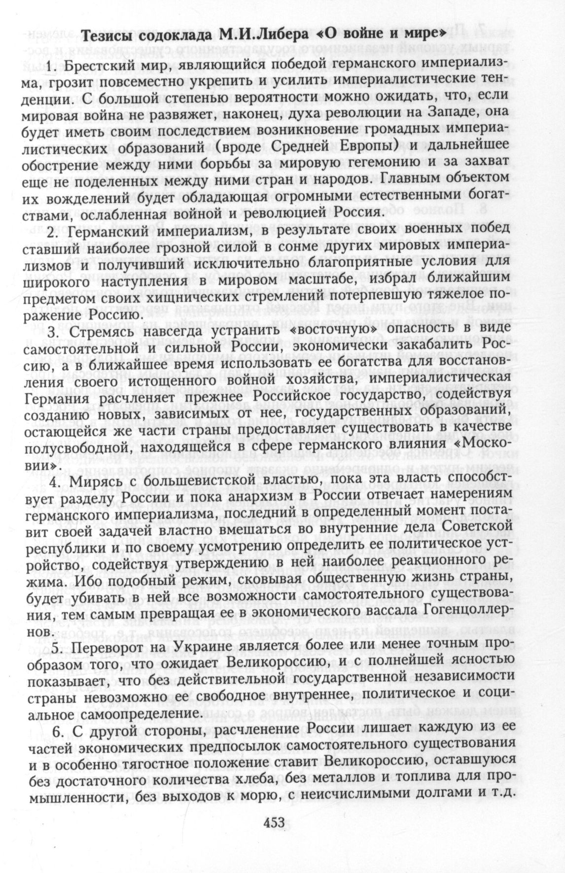Материалы Всероссийского партийного совещания при ЦК. Москва, 21—27 мая. Тезисы содоклада М.И.Либера «О войне и мире»