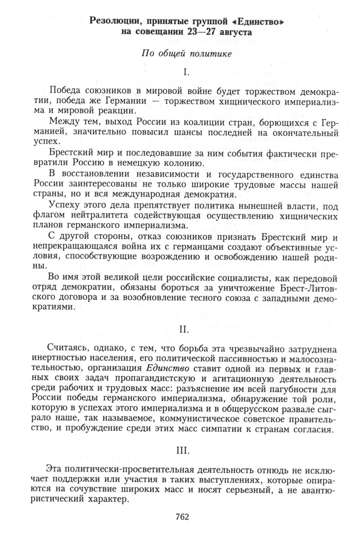 Главная Серия «Политические партии России. Конец XIX – первая треть ХХ века... Меньшевики в 1903—1931 гг. Меньшевики в большевистской России. 1918—1924. Меньшевики в 1918 году Документы Документы группы «Единство». Резолюции, принятые группой «Единство»...