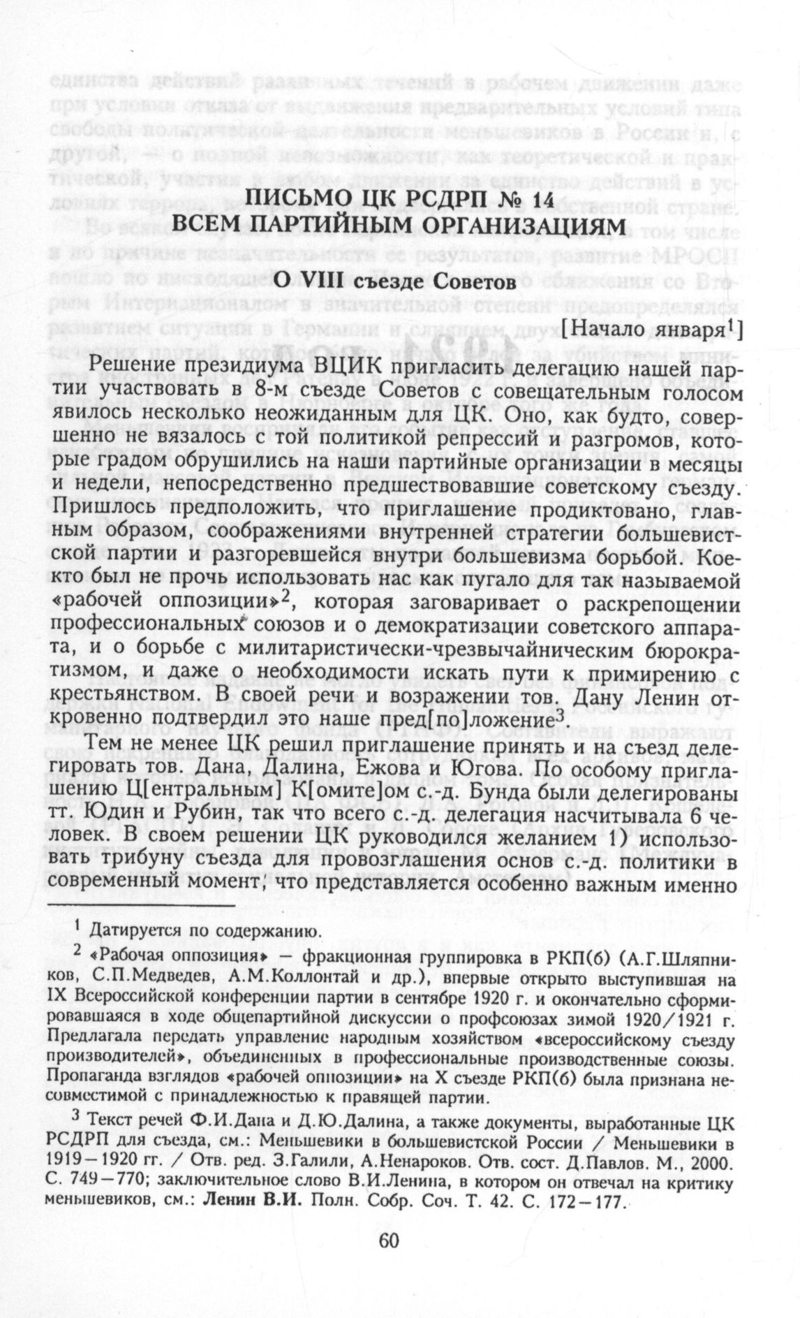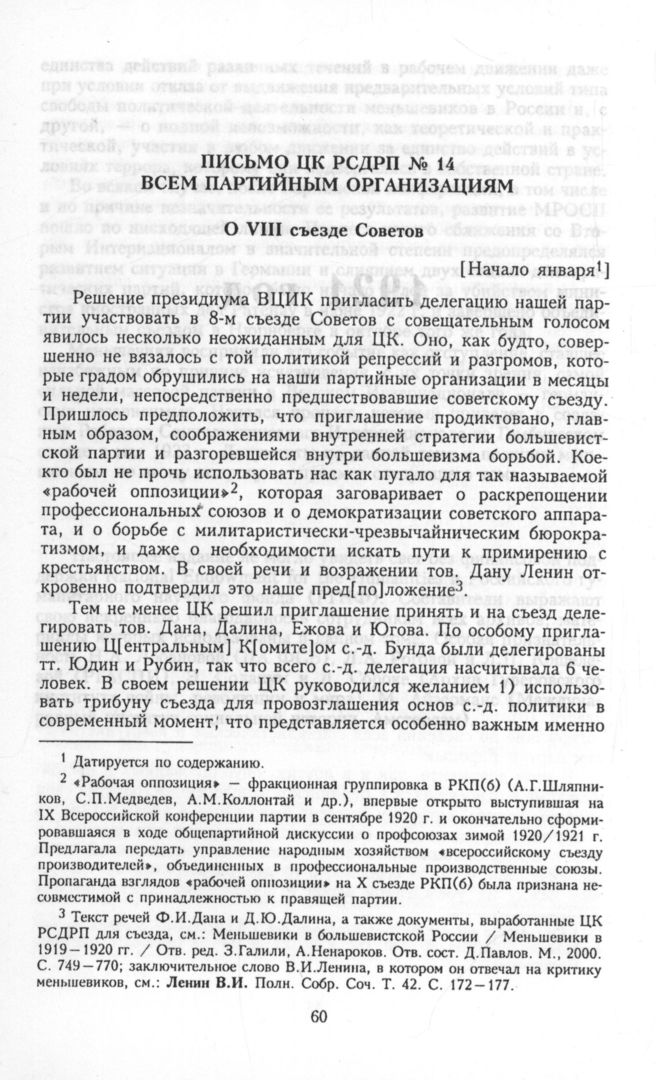 Письмо ЦК РСДРП № 14 всем партийным организациям о VIII съезде Советов. [Начало января] // ЦА ФСБ. Ф. 1. Оп. 5. Д. 335. Л. 189-189 об. Угасающая машинопись.