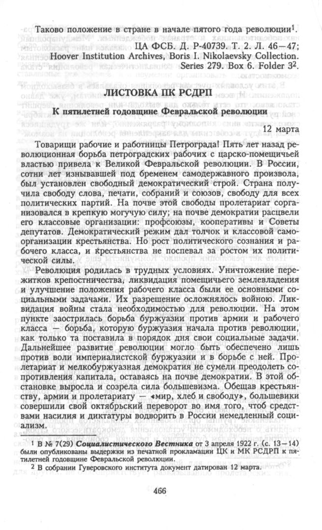 Главная Серия «Политические партии России. Конец XIX – первая треть ХХ века... Меньшевики в 1903—1931 гг. Меньшевики в большевистской России. 1918—1924. Меньшевики в 1921—19... Документы Листовка ПК РСДРП. К пятилетней годовщине февральской революции. 12...