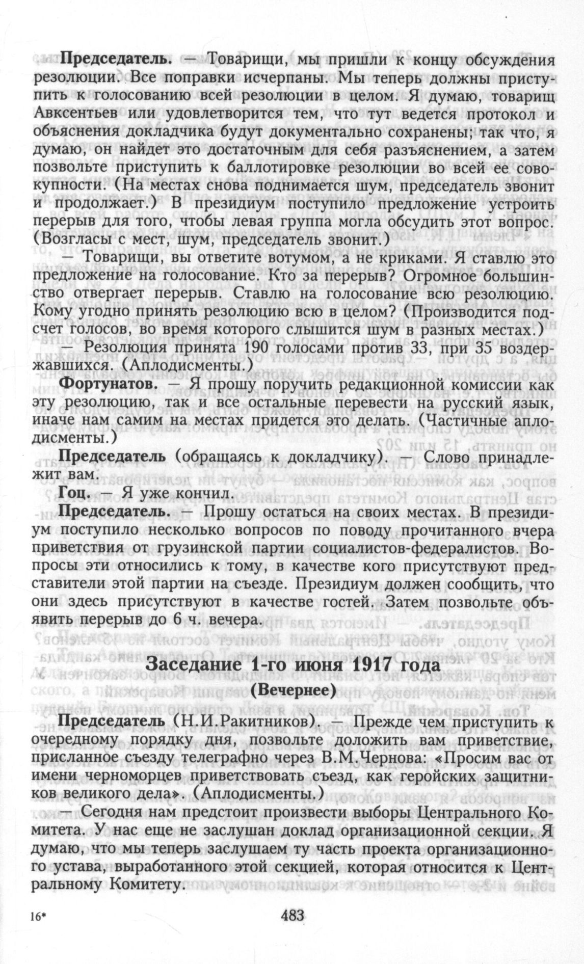 Протоколы Третьего съезда партии социалистов-революционеров (25 мая — 4 июня 1917 г.). Стенографический отчет. Заседание 1-го июня 1917 года (Вечернее)