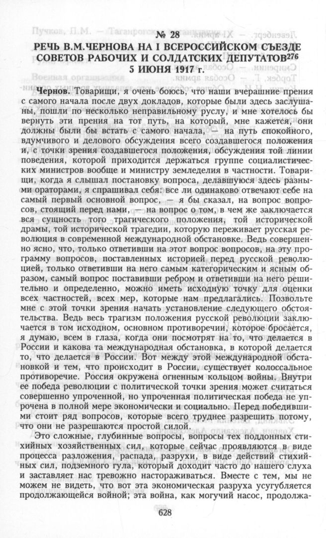Главная Серия «Политические партии России. Конец XIX – первая треть ХХ века... Партия социалистов-революционеров. Документы и материалы. 1900—1925... Партия социалистов-революционеров. Документы и материалы. 1900—1925... Документы Речь В.М.Чернова на I Всероссийском съезде Советов рабочих и солдат...