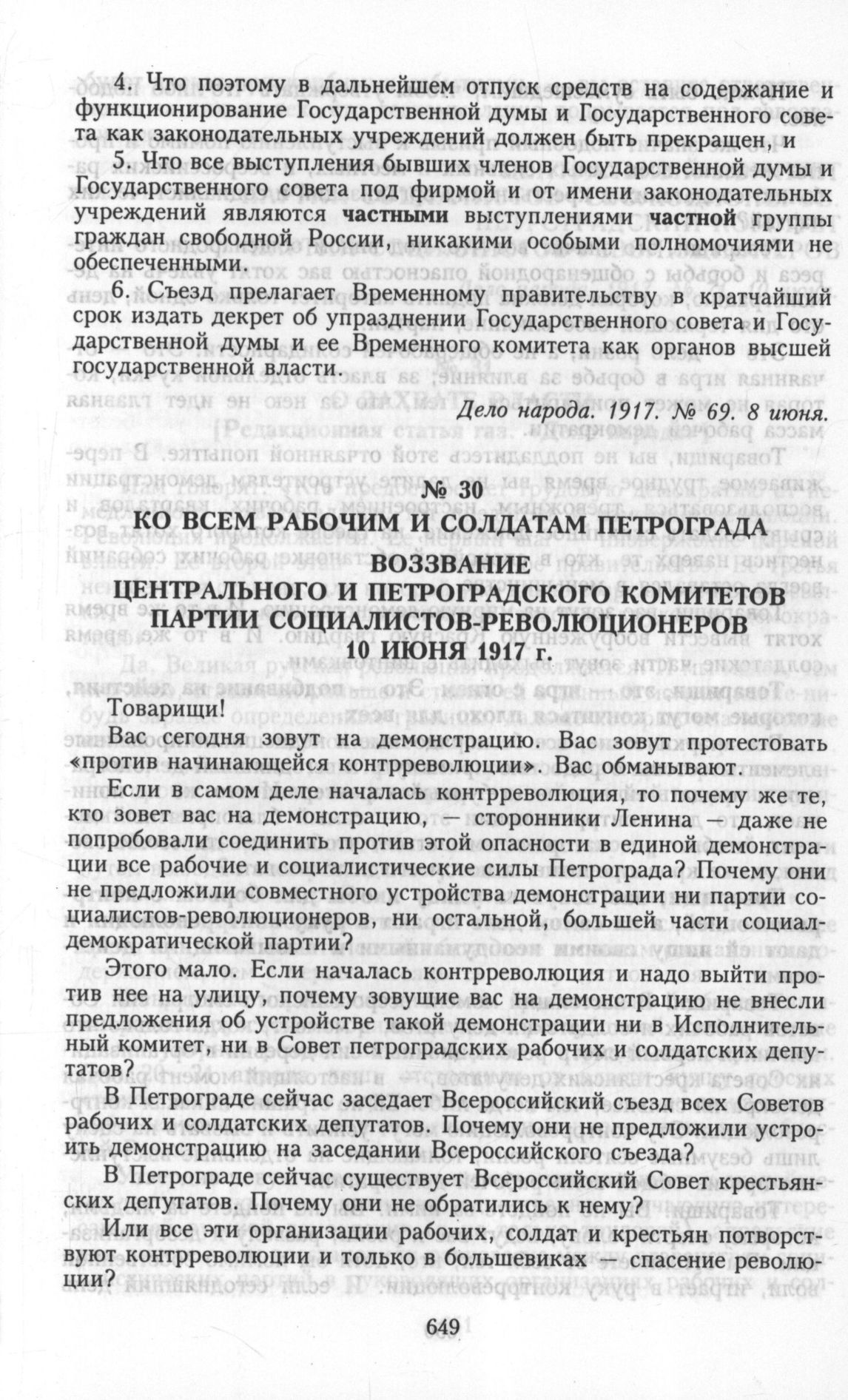Ко всем рабочим и солдатам Петрограда. Воззвание Центрального и Петроградского Комитетов партии социалистов-революционеров 10 июня 1917 г. // Дело народа. 1917. № 71. 10 июня.