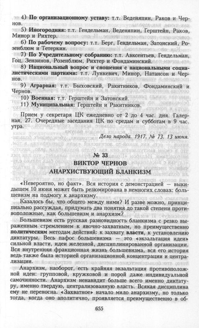 Виктор Чернов. Анархиствующий бланкизм // Дело народа. 1917. № 73. 13 июня.