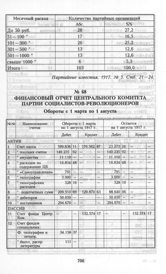 Финансовый отчет Центрального Комитета партии социалистов-революционеров. Обороты с 1 марта по 1 августа // Партийные известия. 1917. № 1. Стб. 39 —40.