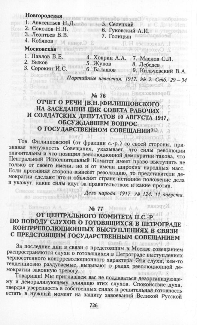 Главная Серия «Политические партии России. Конец XIX – первая треть ХХ века... Партия социалистов-революционеров. Документы и материалы. 1900—1925... Партия социалистов-революционеров. Документы и материалы. 1900—1925... Документы Отчет о речи В.Н.Филипповского на заседании ЦИК Совета рабочих и со...