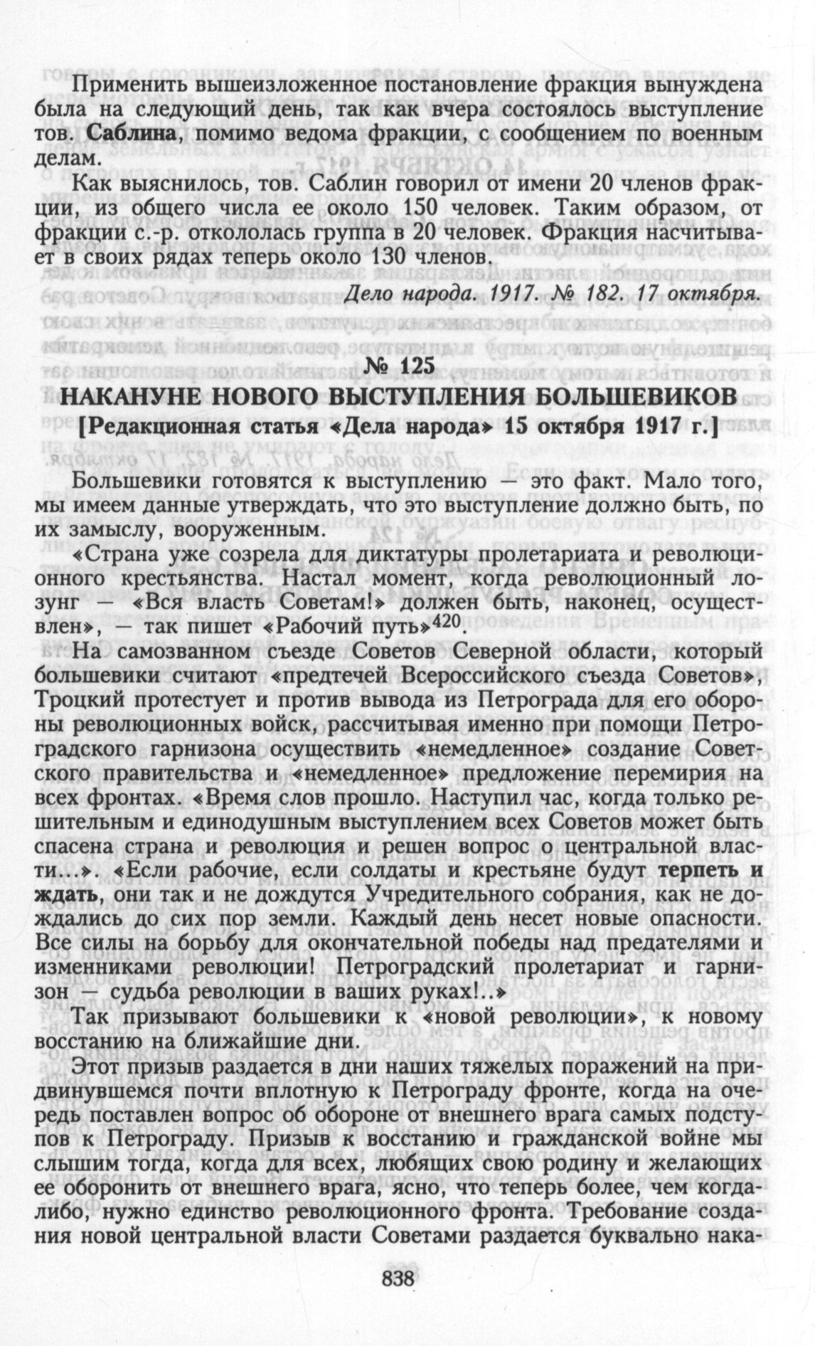 Накануне нового выступления большевиков [Редакционная статья «Дела народа» 15 октября 1917 г.]