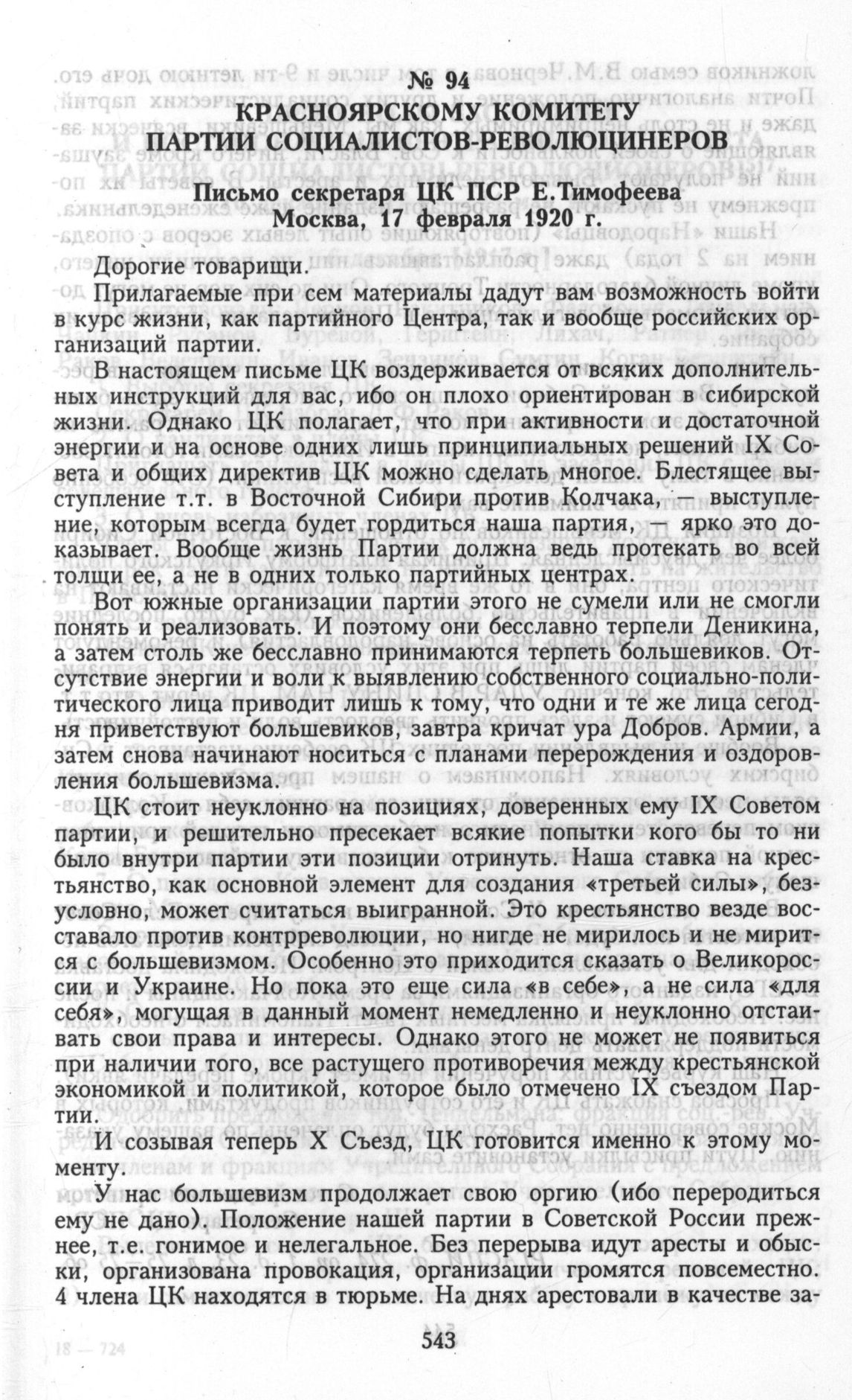 Главная Серия «Политические партии России. Конец XIX – первая треть ХХ века... Партия социалистов-революционеров. Документы и материалы. 1900—1925... Партия социалистов-революционеров. Документы и материалы. 1900—1925... Документы Красноярскому комитету партии социалистов-революционеров. Письмо се...