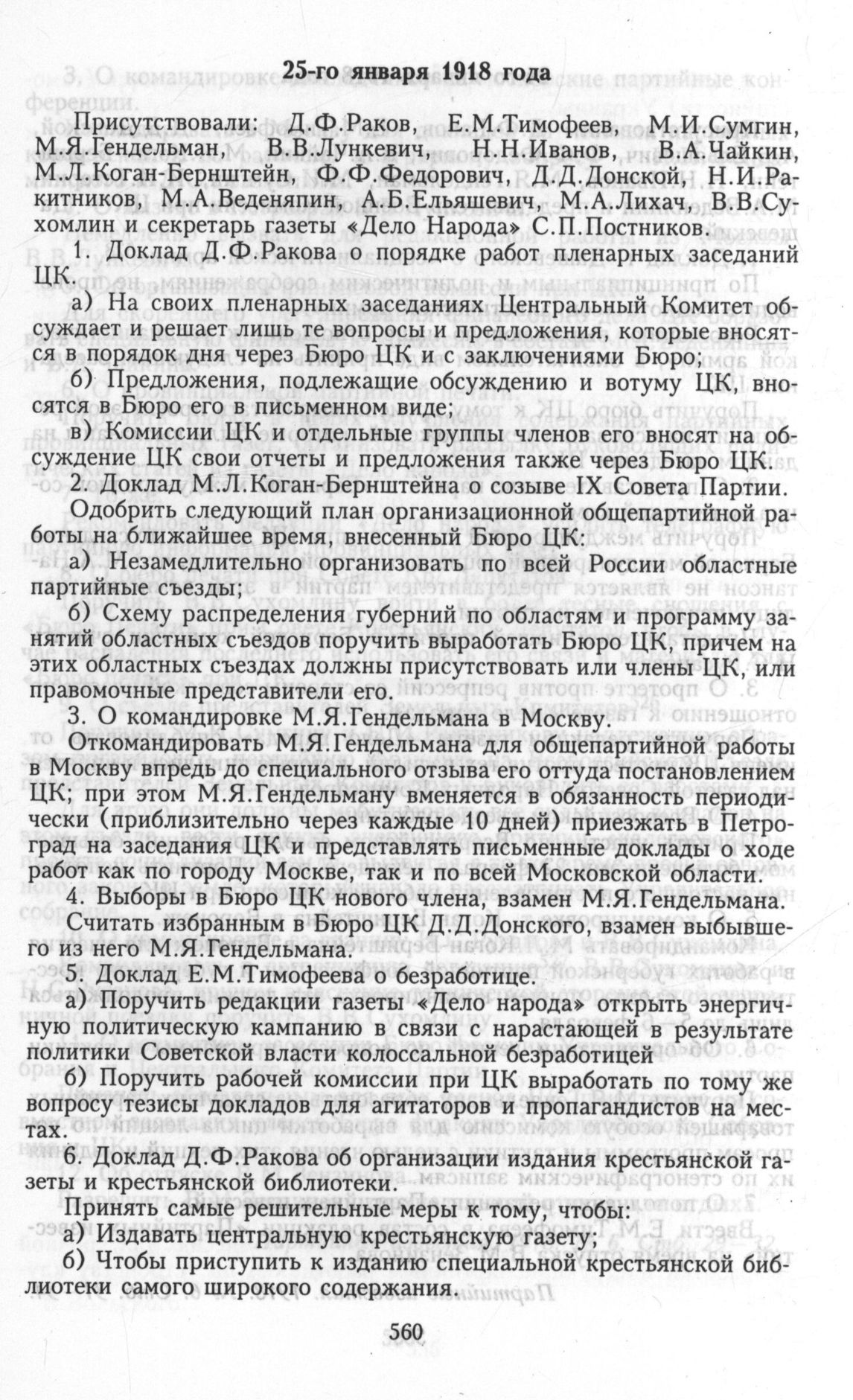 Протоколы заседаний Центрального Комитета партии социалистов-революционеров (6 декабря 1917 г. —11 мая 1920 г.) 25 января 1918 г.