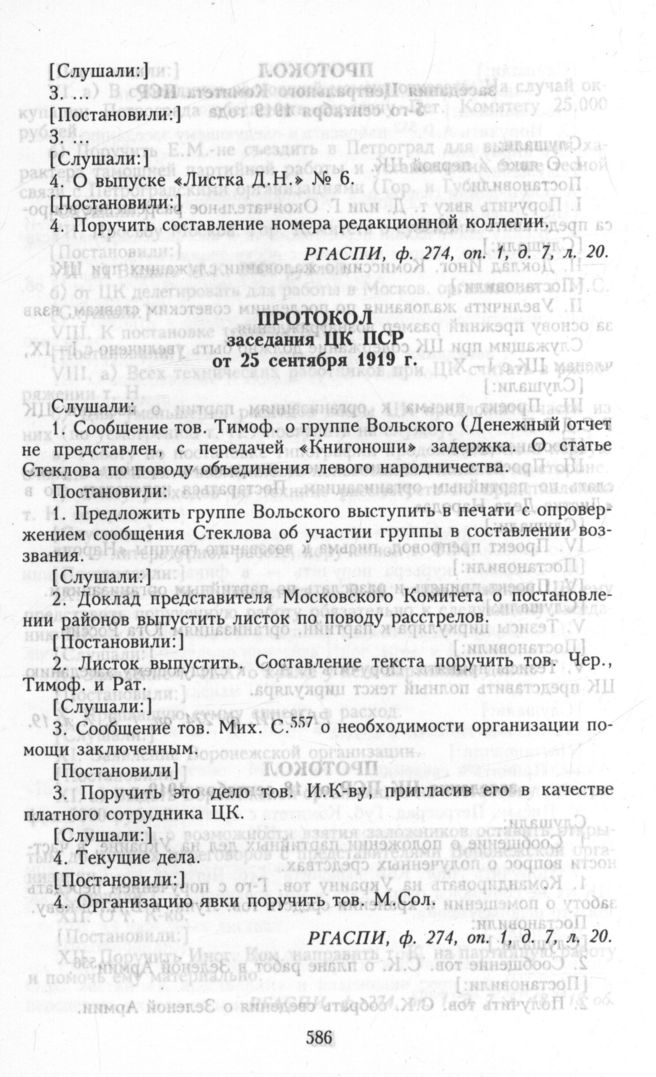 Протоколы заседаний Центрального Комитета партии социалистов-революционеров (6 декабря 1917 г. —11 мая 1920 г.) Протокол заседания ЦК ПСР от 25 сентября 1919 г.