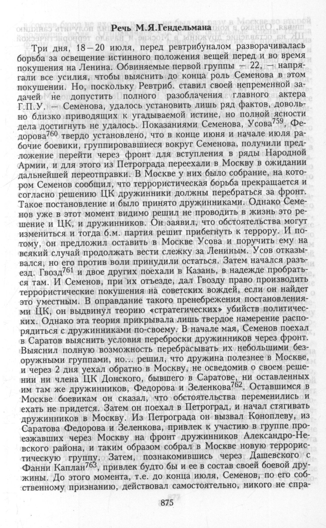 Московский процесс социалистов-революционеров. I. Речи подсудимых. Речь М.Я.Гендельмана // Революционная Россия. 1922. № 21—22. С. 3—21.