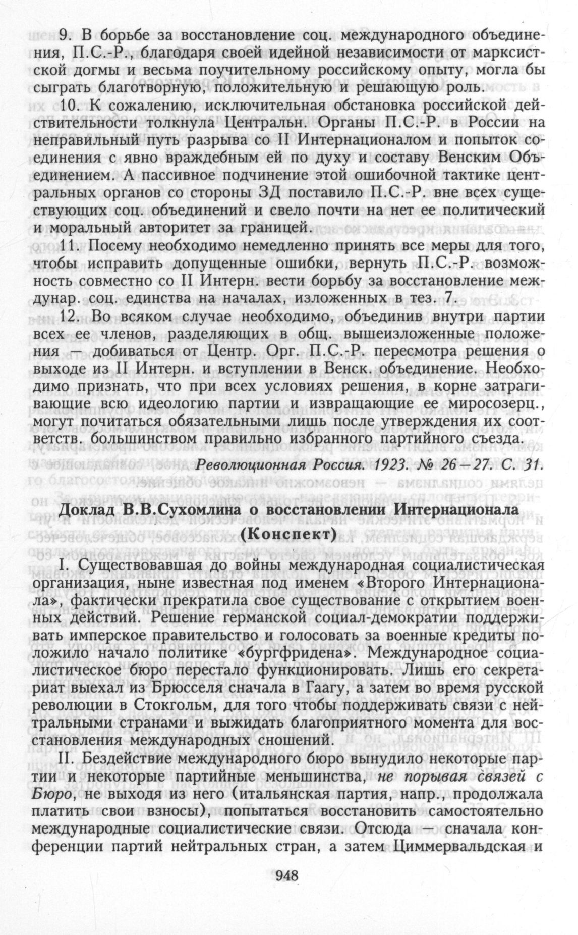 Берлинское совещание социалистов-революционеров. (Декабрь 1922 г.). Доклад В.В.Сухомлина о восстановлении Интернационала. (Конспект)