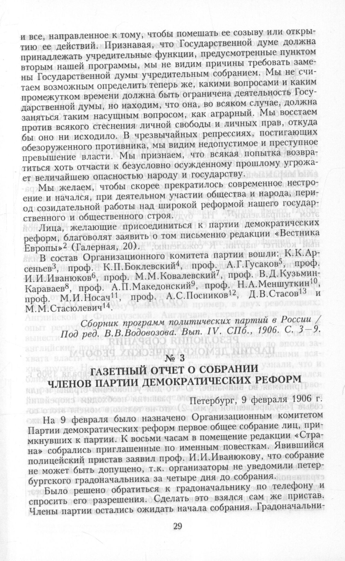 Газетный отчет о собрании членов Партии демократических реформ. Петербург, 9 февраля 1906 г. // ОР PH Б. Ф. 1072. Т. XIV. Л. 43.