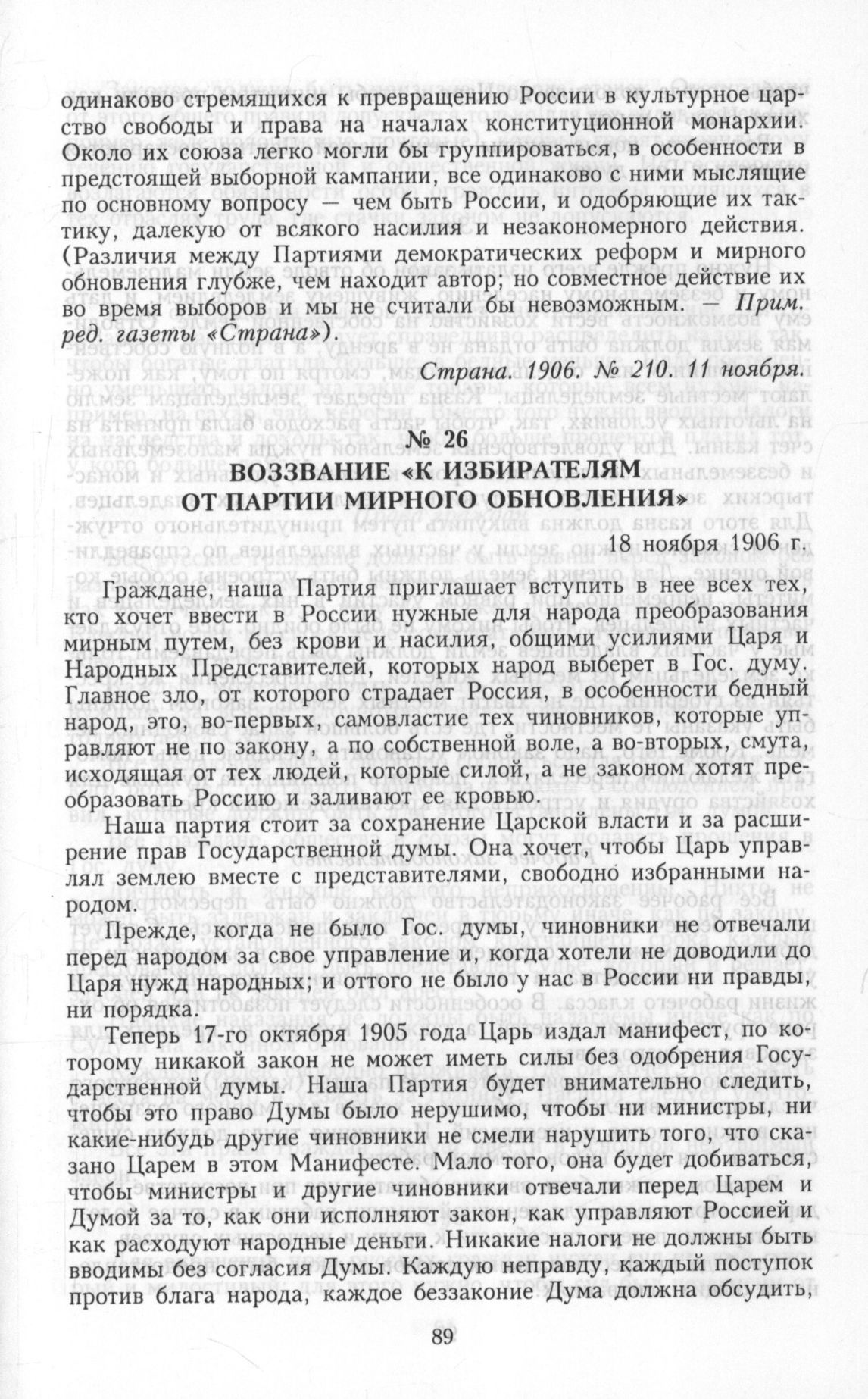 Воззвание «К избирателям от Партии мирного обновления». 18 ноября 1906 г.