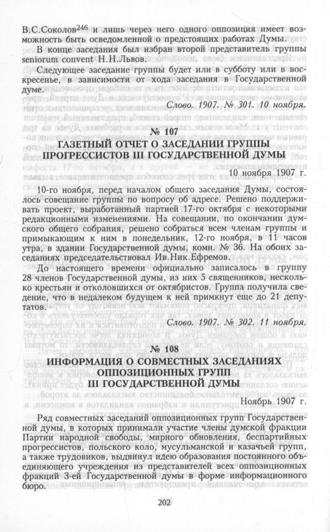 Газетный отчет о заседании группы прогрессистов III Государственной думы. 10 ноября 1907 г. // Слово. 1907. № 302. 11 ноября.