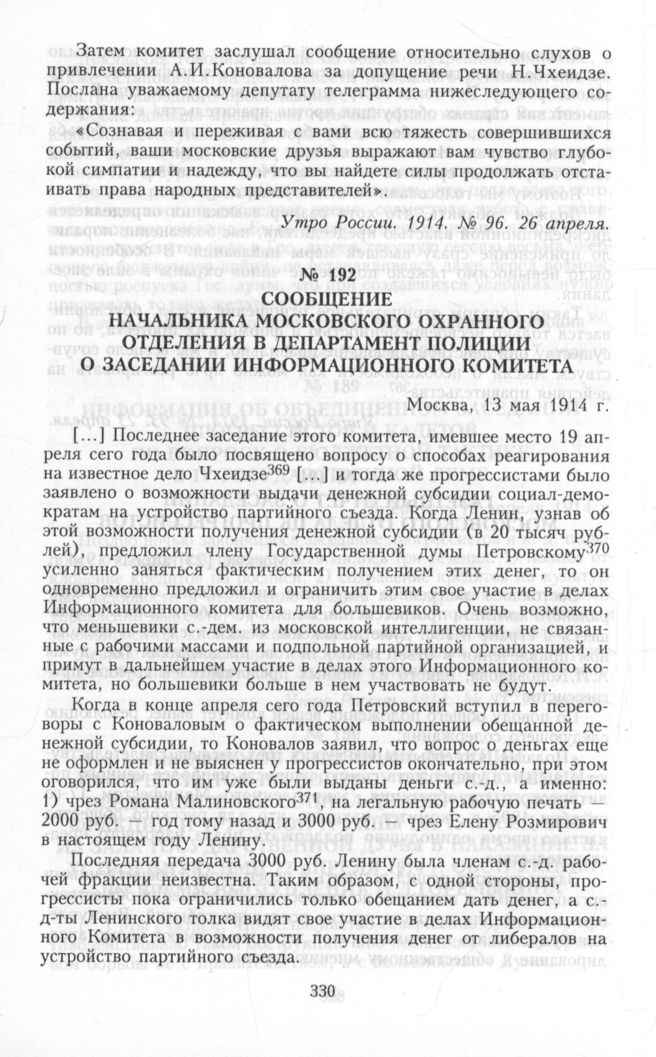 Сообщение начальника Московского охранного отделения в Департамент полиции о заседании Информационного комитета. Москва, 13 мая 1914 г. // ГА РФ. ДП ОО. Ф. 102. 1914. Д. 13. Л. Б. Л. 20.