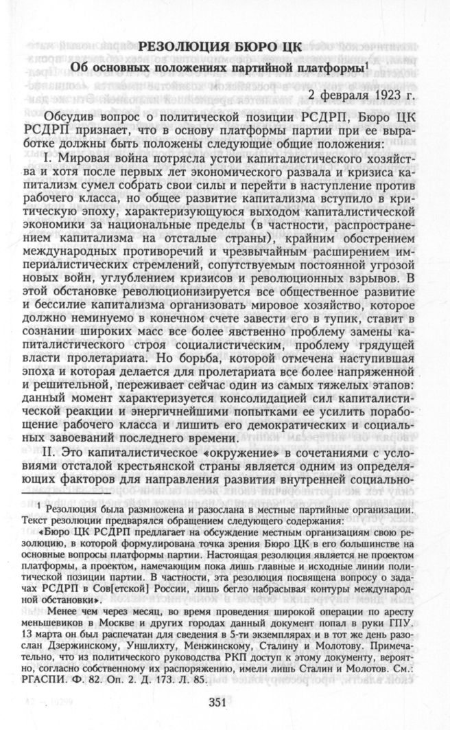 Главная Серия «Политические партии России. Конец XIX – первая треть ХХ века... Меньшевики в 1903—1931 гг. Меньшевики в большевистской России. 1918—1924. Меньшевики в 1922—19... Документы Резолюция Бюро ЦК. Об основных положениях партийной платформы. 2 фе...