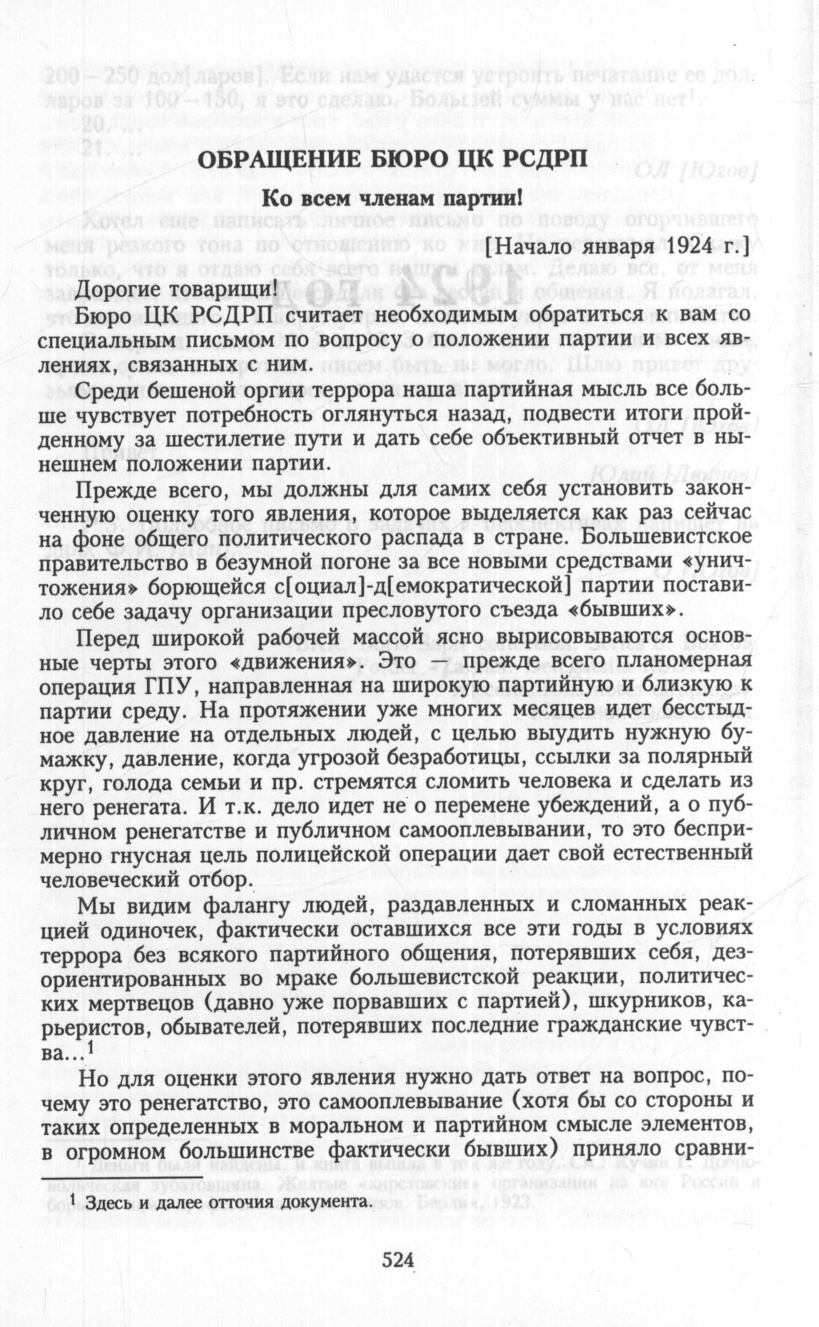 Главная Серия «Политические партии России. Конец XIX – первая треть ХХ века... Меньшевики в 1903—1931 гг. Меньшевики в большевистской России. 1918—1924. Меньшевики в 1922—19... Документы Обращение Бюро ЦК РСДРП. Ко всем членам партииI [Начало января]